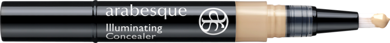 Endstück drehen bis die Farbe im Pinsel sichtbar wird. ARABESQUE Illuminating Concealer auf die zu retuschierende Stelle auftragen und mit dem Pinsel-Applikator oder den Fingerspitzen verteilen und leicht einklopfen.