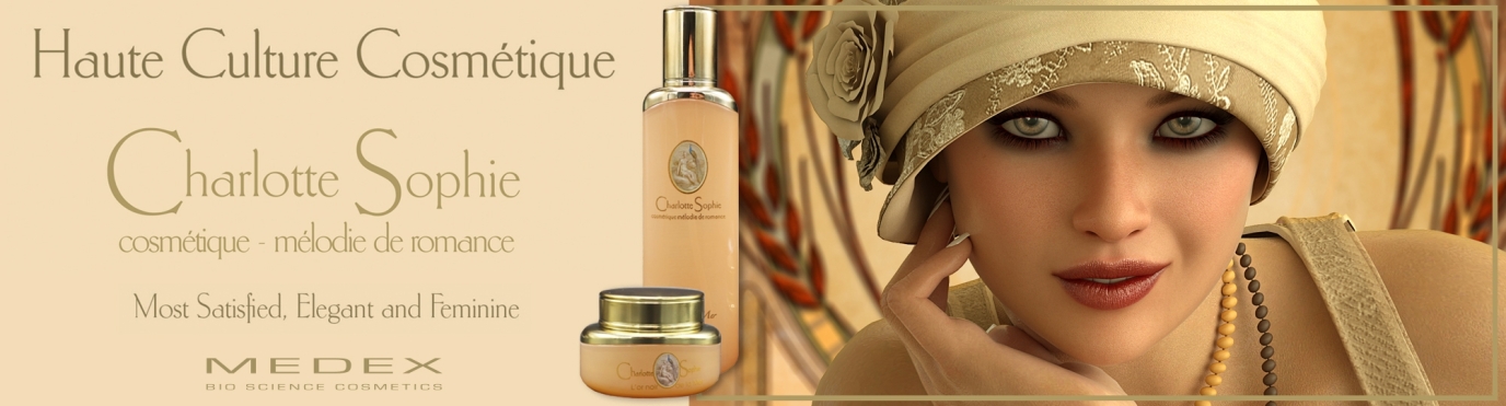 Die Kosmetiklinie Charlotte Sophie aus dem Medex Research Labor bietet erstklassige Produkte mit luxoriösesten Inhaltstoffen wie Gold, Kaviar und sogar Platin. Die erzielten Resultate in Sachen Wirksamkeit sind atemberaubend. Alle Produkte von Charlotte Sophie zeichnen sich aus durch optimale Effektivität und Verträglichkeit. Für Alle, die "mehr" wollen und es sich leisten können.