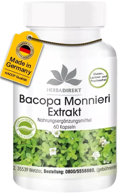 Bacopa Monnieri Extrakt (Bacopa monnieri, enthält 20% Bacoside) ist ein hochwertiges Extrakt, das traditionell in der ayurvedischen Medizin verwendet wird. Diese Kapseln sind mit Hydroxypropylmethylcellulose für die Kapselhülle versehen und enthalten zusätzlich L-Leucin sowie Reisschalenkonzentrat.