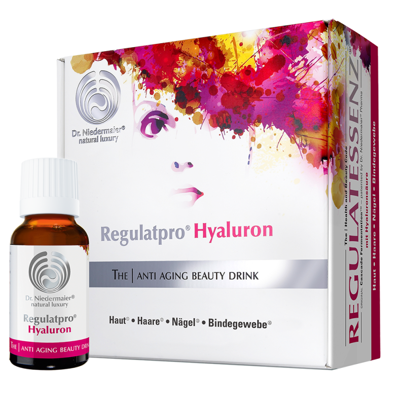 Dr. Niedermaier Regulatpro® Hyaluron - der Anti Aging Beauty Drink - ist ein flüssiges Nahrungsergänzungsmittel und gilt bei Niedermaier als "Das Geheimnis der preisgekrönten Schönheitskur".