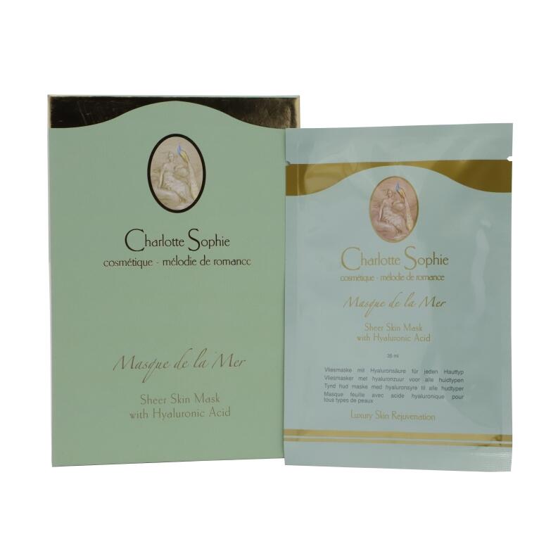 Anwendung: Charlotte Sophie Masque de la Mer auspacken und das enthaltene Vlies auf die gereinigte Gesichtshaut legen, gut andrücken und 15-20min einwirken lassen. Vlies von der Haut nehmen und Reste einmassieren. Anschließend Pflegecreme darüber auftragen.