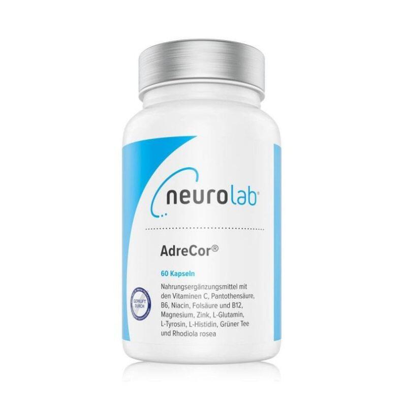 Neurolab AdreCor ist ein Nahrungsergänzungsmittel mit den Vitaminen C, Pantothensäure, B6, Niacin, Folsäure und B12, Magnesium, Zink, L-Glutamin, L-Tyrosin, L-Histidin, Grüner Tee und Rhodiola rosea.